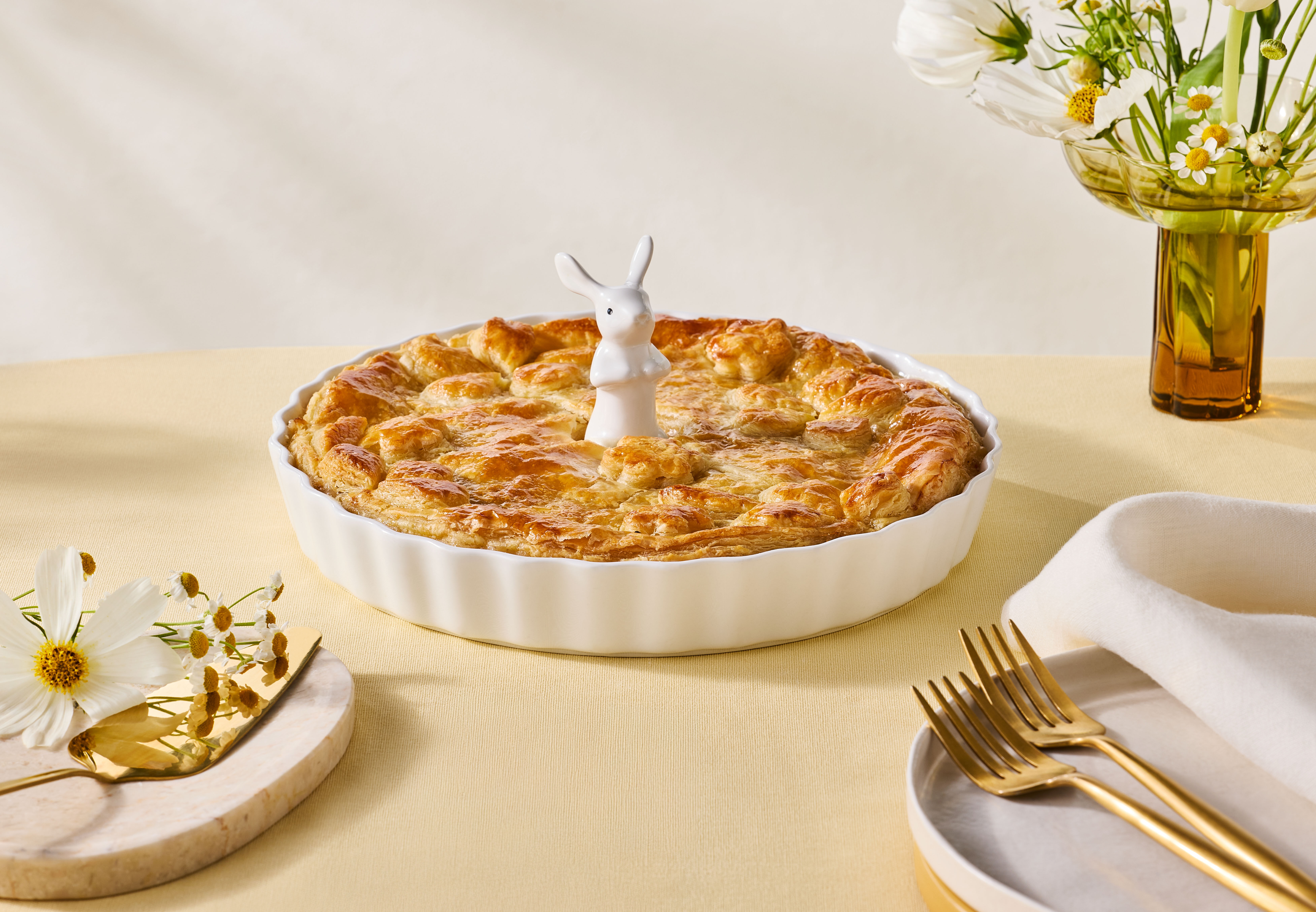 烘焙派點時,派兔、派鴨可作為蒸氣導流孔,協助排出內餡水氣,使派皮維持酥脆口感與完整外型,同時避免餡料溢出,提升整體烘焙的穩定度。花瓣系列更將經典派鳥轉化為兔子與鴨子造型,為料理過程注入輕盈活潑的氛圍。