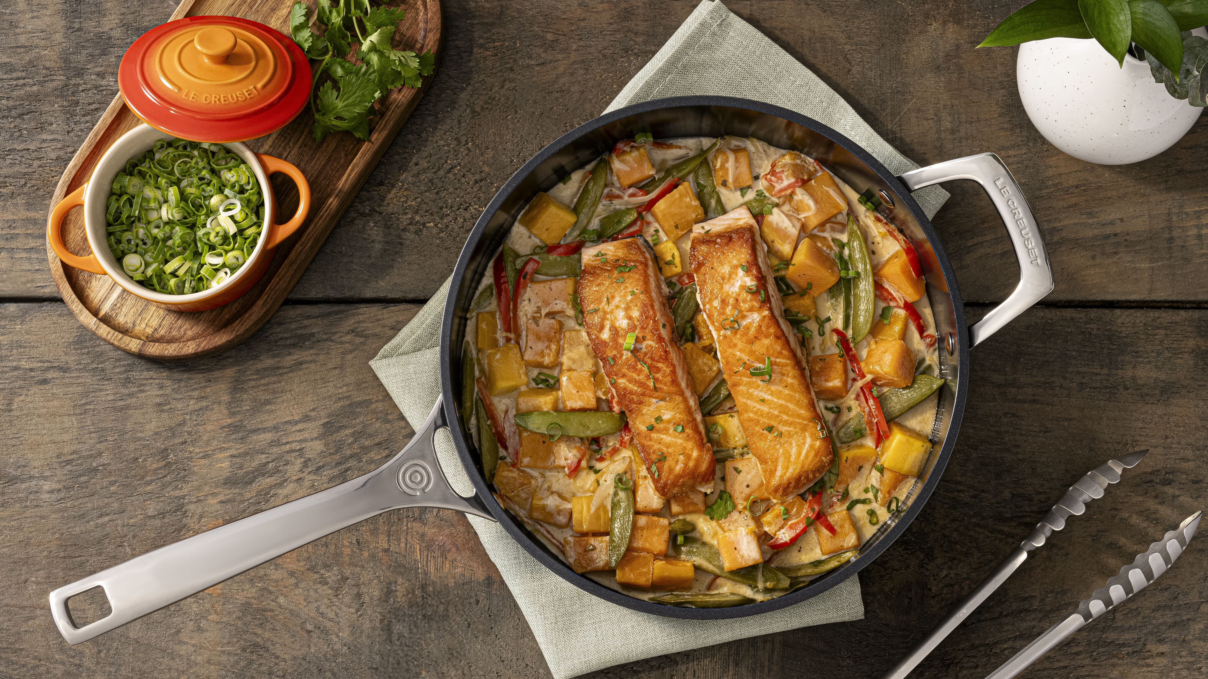 首頁 > Le Creuset 美味食譜 > 椰香綠咖哩煎鮭魚